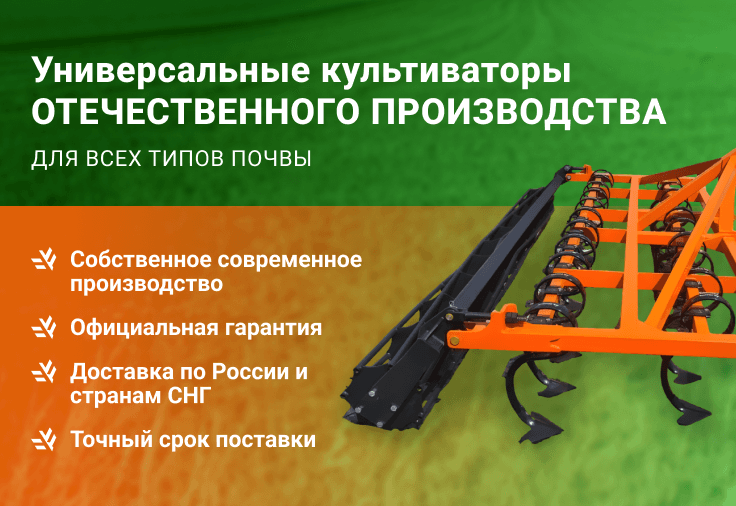 В линейке продукции компании имеется широкий модельный ряд универсальных культиваторов для тракторов под любые сельхоз задачи. Количество рабочих органов представленных культиваторов варьируется от 11 до 45. Предназначены они для пpeдпocевной обработки почвы на нужную глубину, выравнивания зяби и ухода за парами. Культиваторные лапы формируют ровную поверхность почвы после обработки, в отличии от дисковых орудий. Клиновидные стрельчатые лапы обрабатывают стерню, подрезают сорную растительность, обеспечивают разделку почвы, образуют ложе для семенной посадки. На цену культиватора влияют ширина захвата, возможность поворота и движения устройства в разных направлениях.